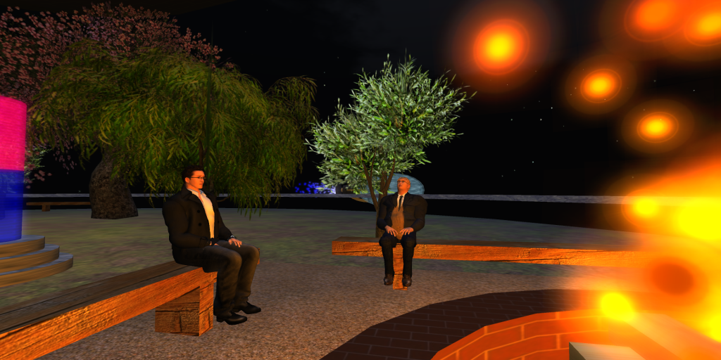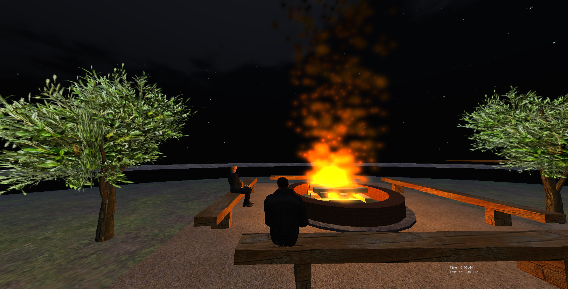 Aber jetzt keinen Druck aufbauen, hier das Interview mit Bernhard. Die Entscheidung seines Avatars Eszettcisle fürs Lagerfeuer bedurfte nicht mal einer Frage – schließlich hatte ich ihn damit hergelockt und wir haben noch etwas seine Settings gepimpt, damit das Feuer dann auch zu sehen war.
