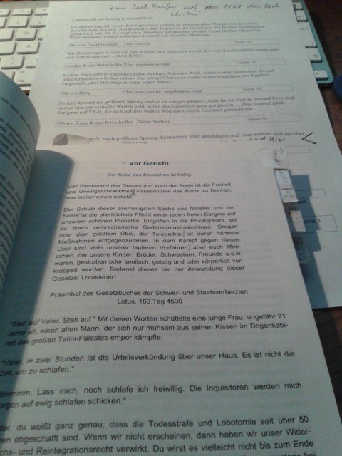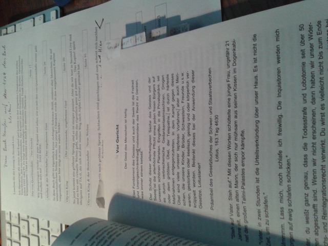 Es war ein tolles Erlebnis mal in der Rolle des Lesenden zu stecken. Natürlich nicht ganz ohne eigene Vorbereitung wie man am Bild hoffentlich erkennen kann. Die Bleistiftstriche bedeuten übrigens: Jetzt Atmen! Ohne sie hätte ich es wohl nicht bis zum nächsten Punkt geschaft.