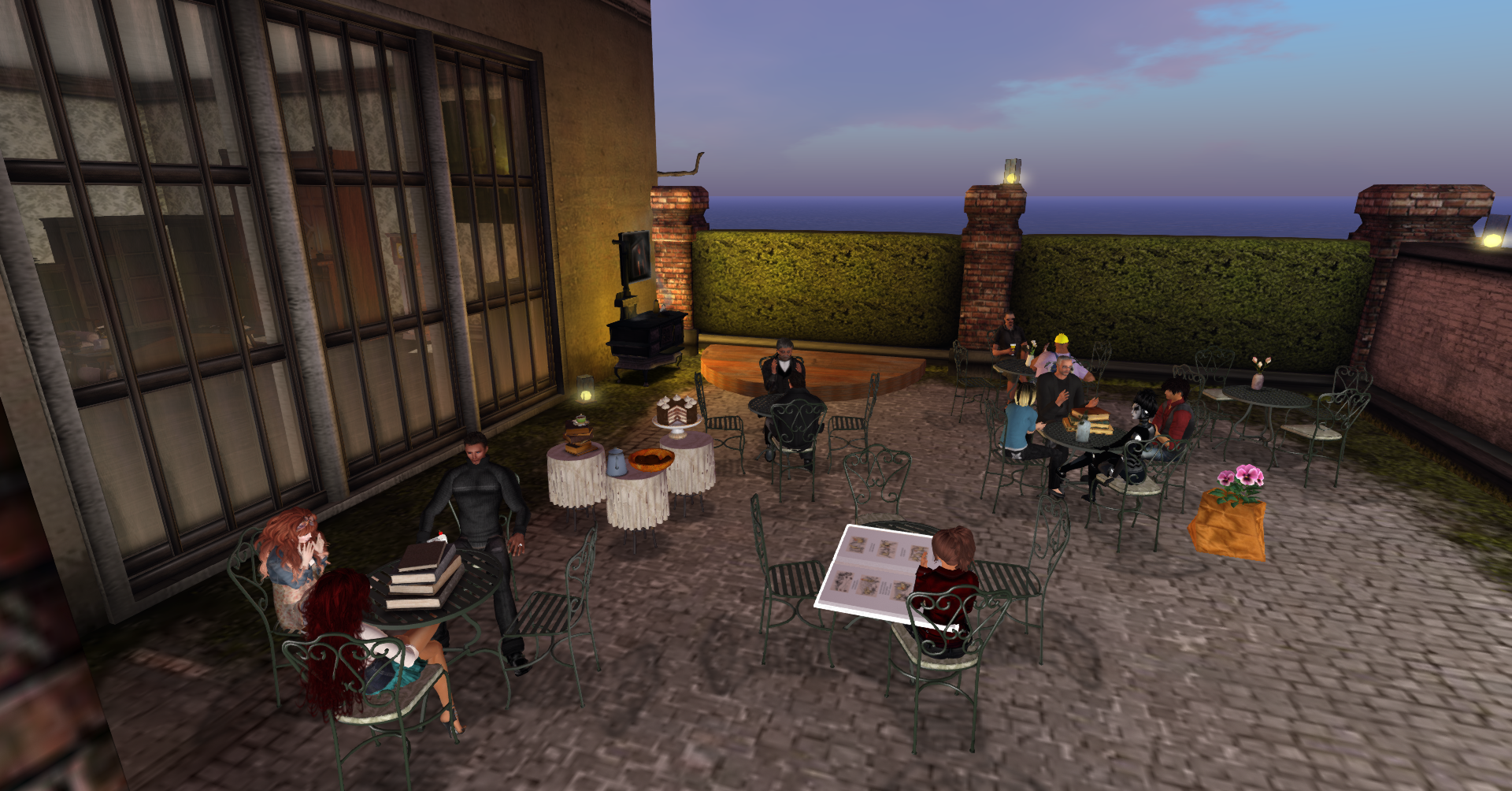 Gleich im Anschluss an die „Sprechstunde“ am Stand des BB E-Book Events ging es ab 20:00 Uhr wieder im Biergarten des Kafe Krümelkram in illusterer Runde um Literatur und um interessante Gespräche über Literatur und mehr.