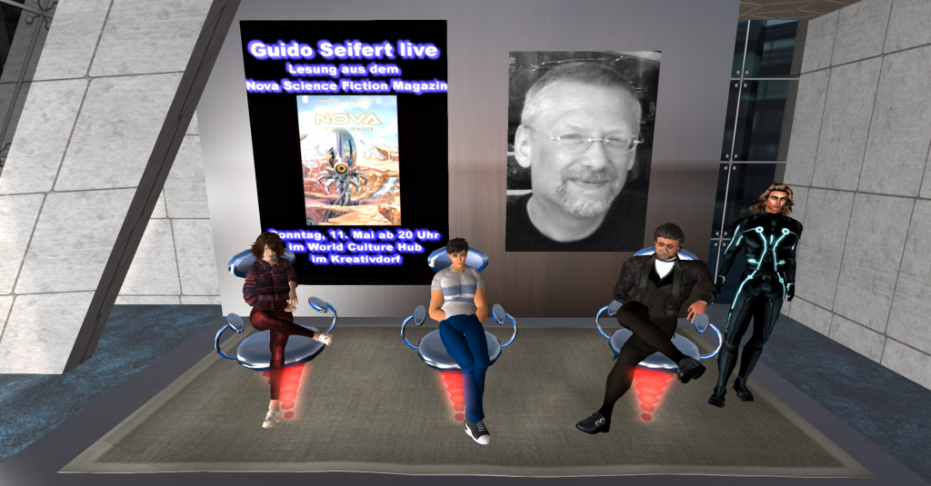 Zuerst wurde man von Guido Seifert in Michael Iwoleits World Culture Hub ins London der nahen Zukunft entführt. Perfekt gelesen und souverän die Oberhand über die viele Anglizismen und Fachtermini beherrschend, die ich teilweise erst mal googlen müsste. Der Mann kann lesen! Und schreiben natürlich. Es erinnerte mich von Stimmungsbild etwas an Clockwork Orange. Man merkt: die Latte im Nova-SF Magazin hängt hoch.