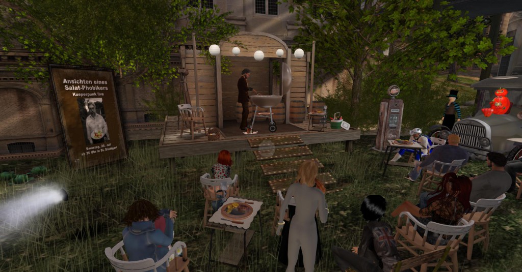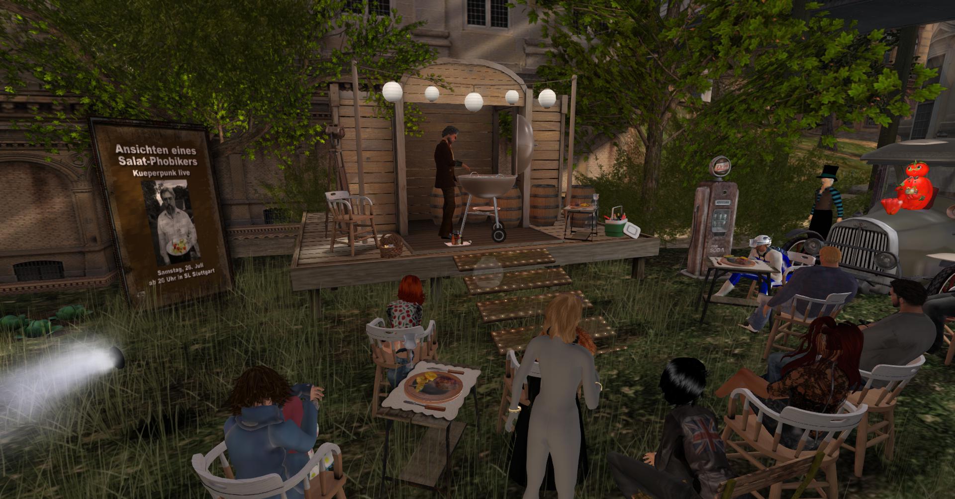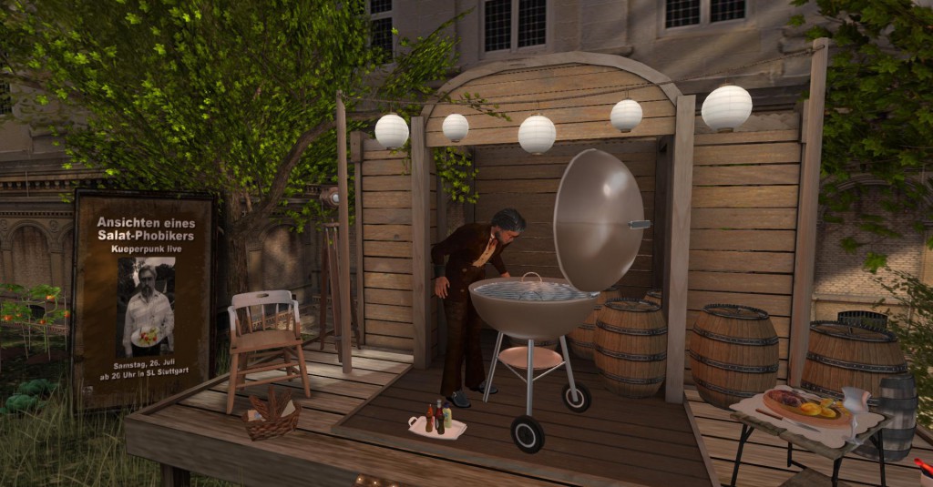 Heute beglückte er auf der wundervoll hergerichteten SIM SL-Stuttgart die 30 anwesenden Zuhörer mit den Ansichten eines Salatphobikers. Ein Programm in dem es aber nicht nur um Salat und andere Dinge ging, die normalerweise nicht auf einen Männergrill gehören. Das er privat da durchaus auf Gemüse grillen kann, hat er ja auf dem Pixelgrillen eindrucksvoll demonstriert, aber ich glaube das tut jetzt nichts zur Sache ;).