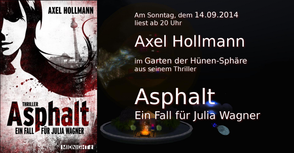 Die Lesung steigt am Sonntag dem 14.09.2014 um 20:00 Uhr im Garten der Hünen-Sphäre.