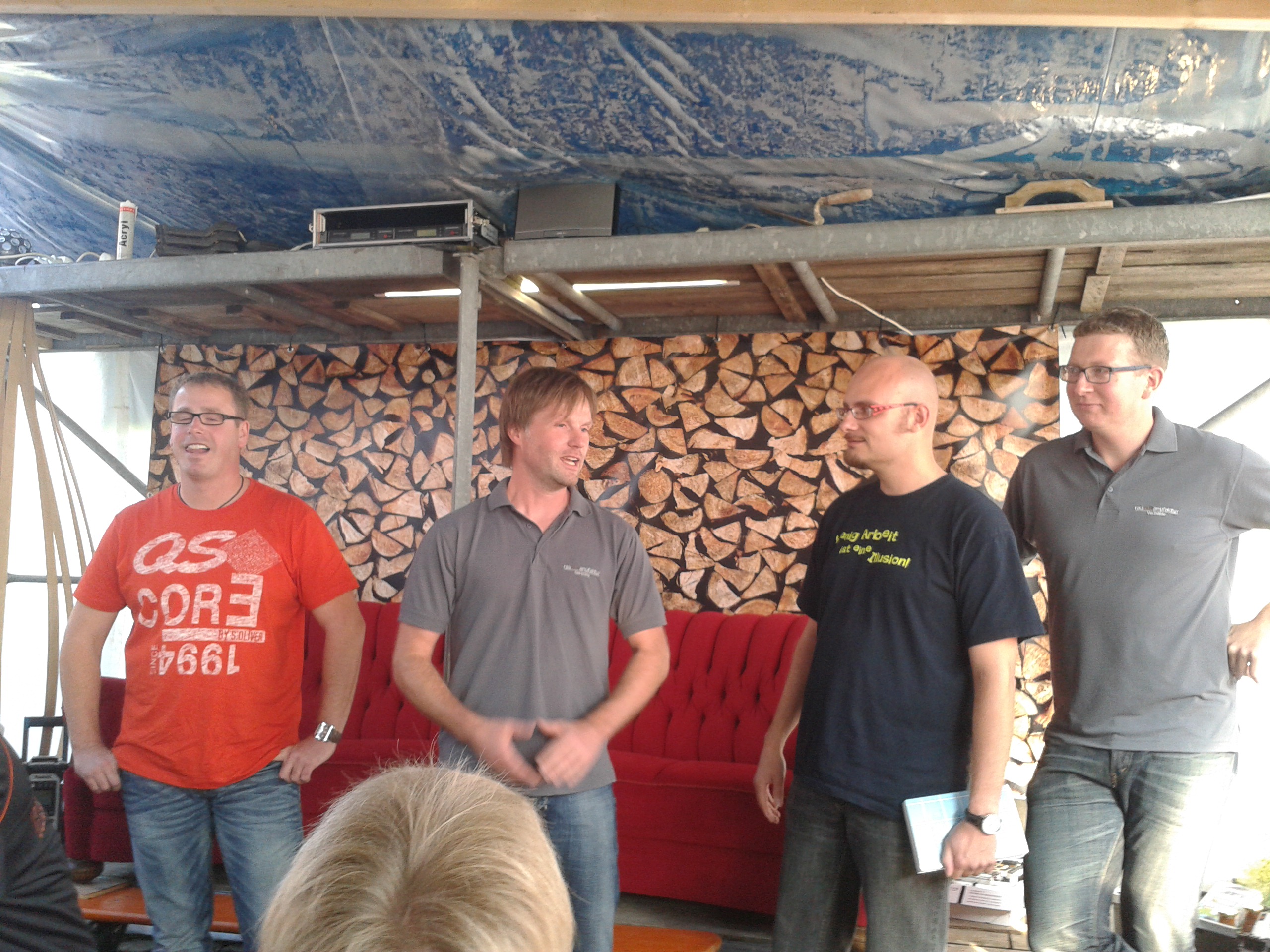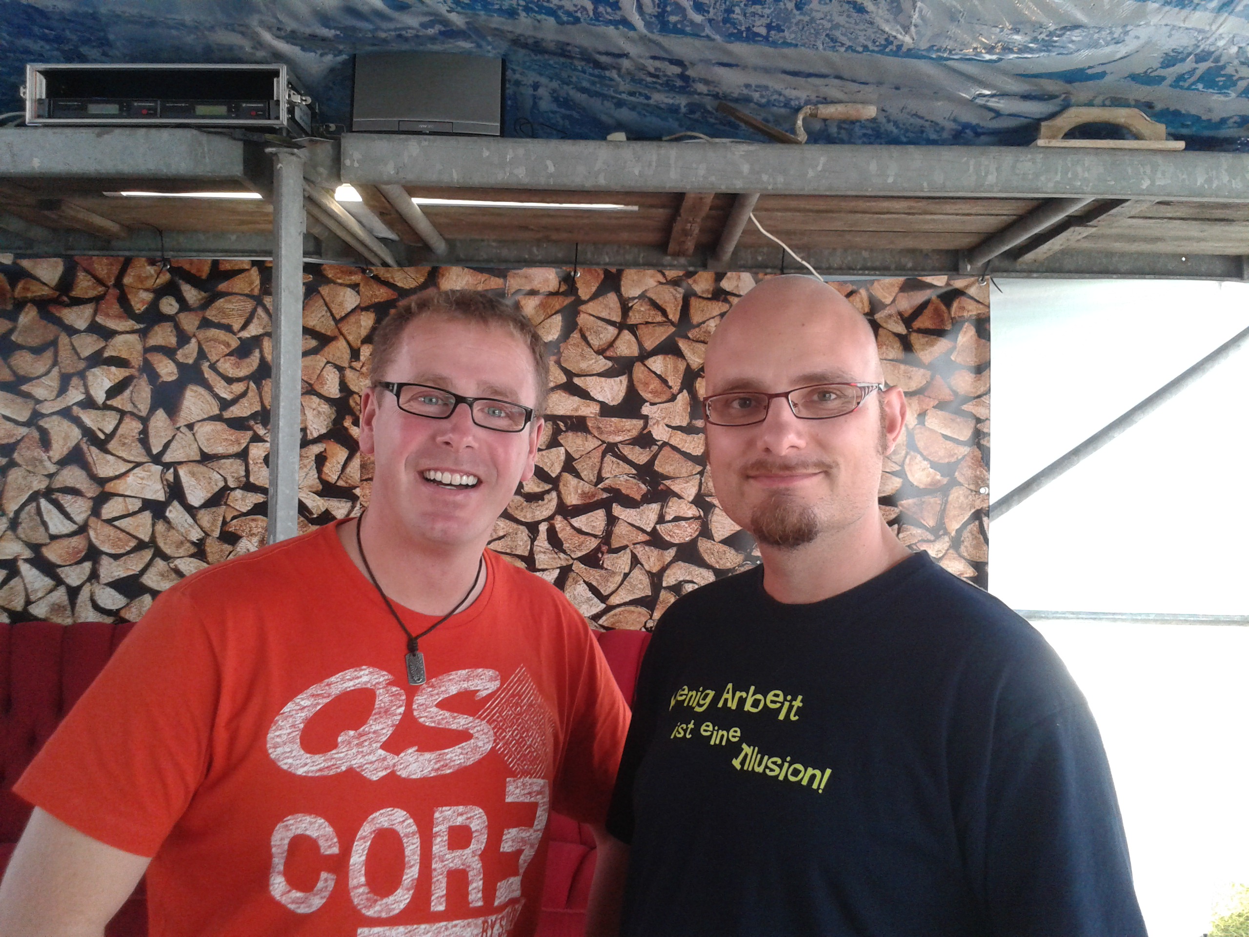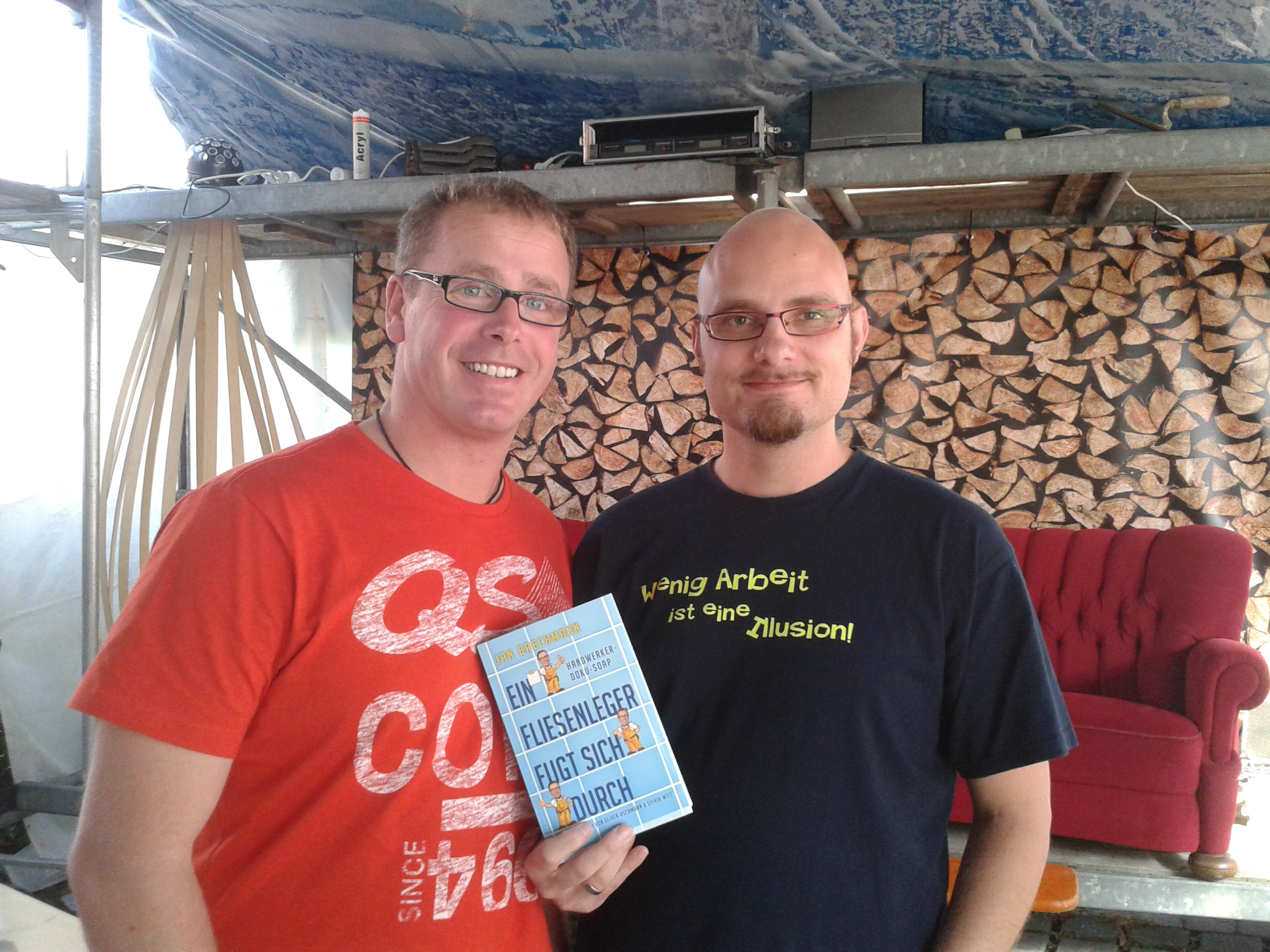 Weit gefehlt, in der mit vierzig Leuten vollbesetzten Baustelle war eine ganze Menge los. Das Publikum hat Tränen gelacht als Jan Brechmann und Oliver Uschmann gemeinsam einige Auszüge aus dem Buch „Ein Fliesenleger fugt sich durch“ vortrugen.