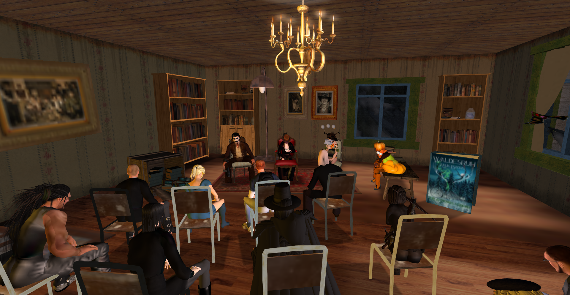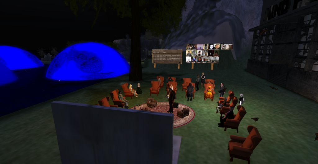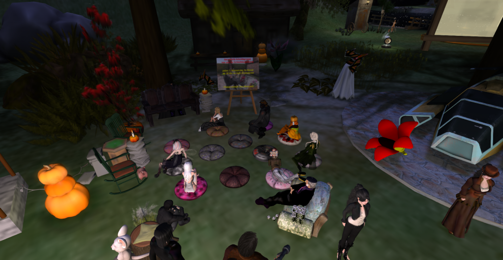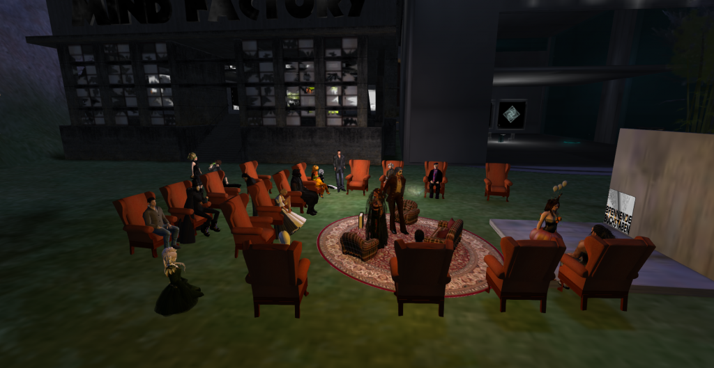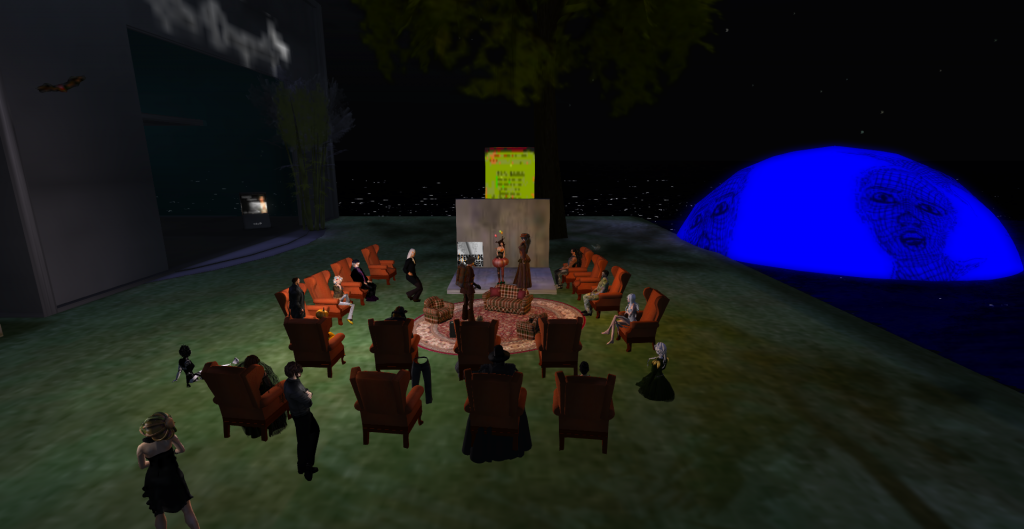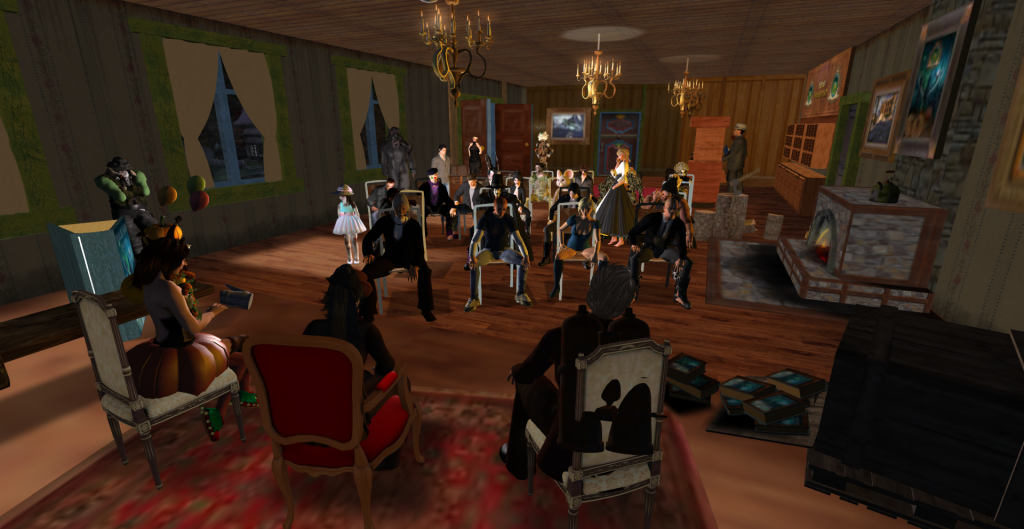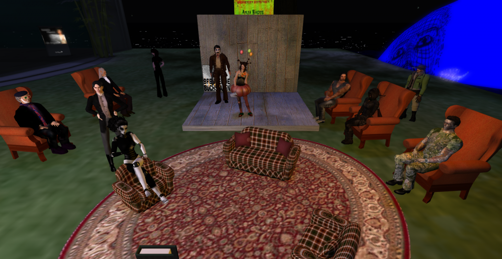 PS: und noch eine Premiere. Wer sich über den neuen Besucher „KoenigFeuerohr“ gewundert hatte. Es war kein normaler Besucher sondern ein RL-Publikum, das auf dem Sofa und Stühlen gebannt den Lesungen lauschte.