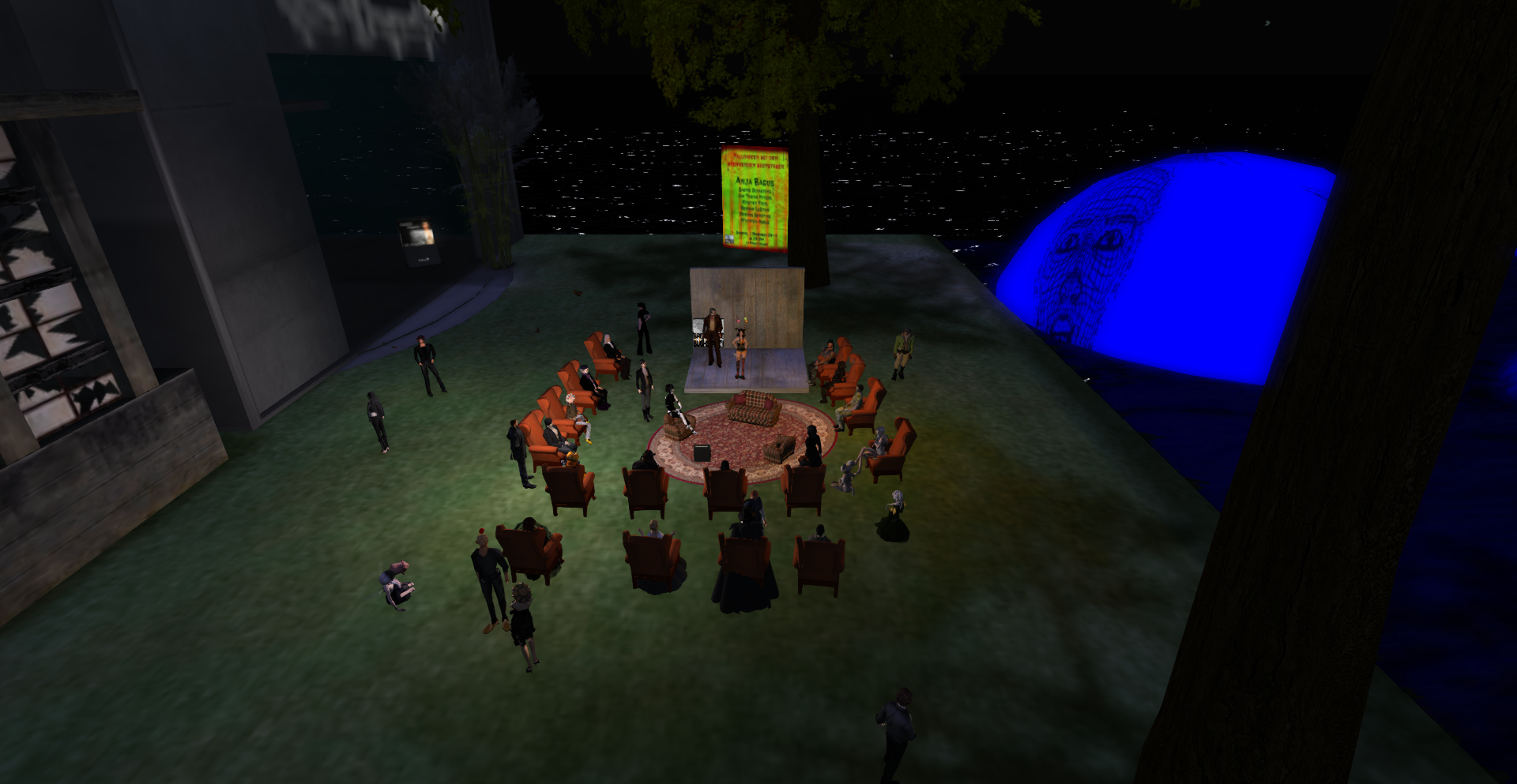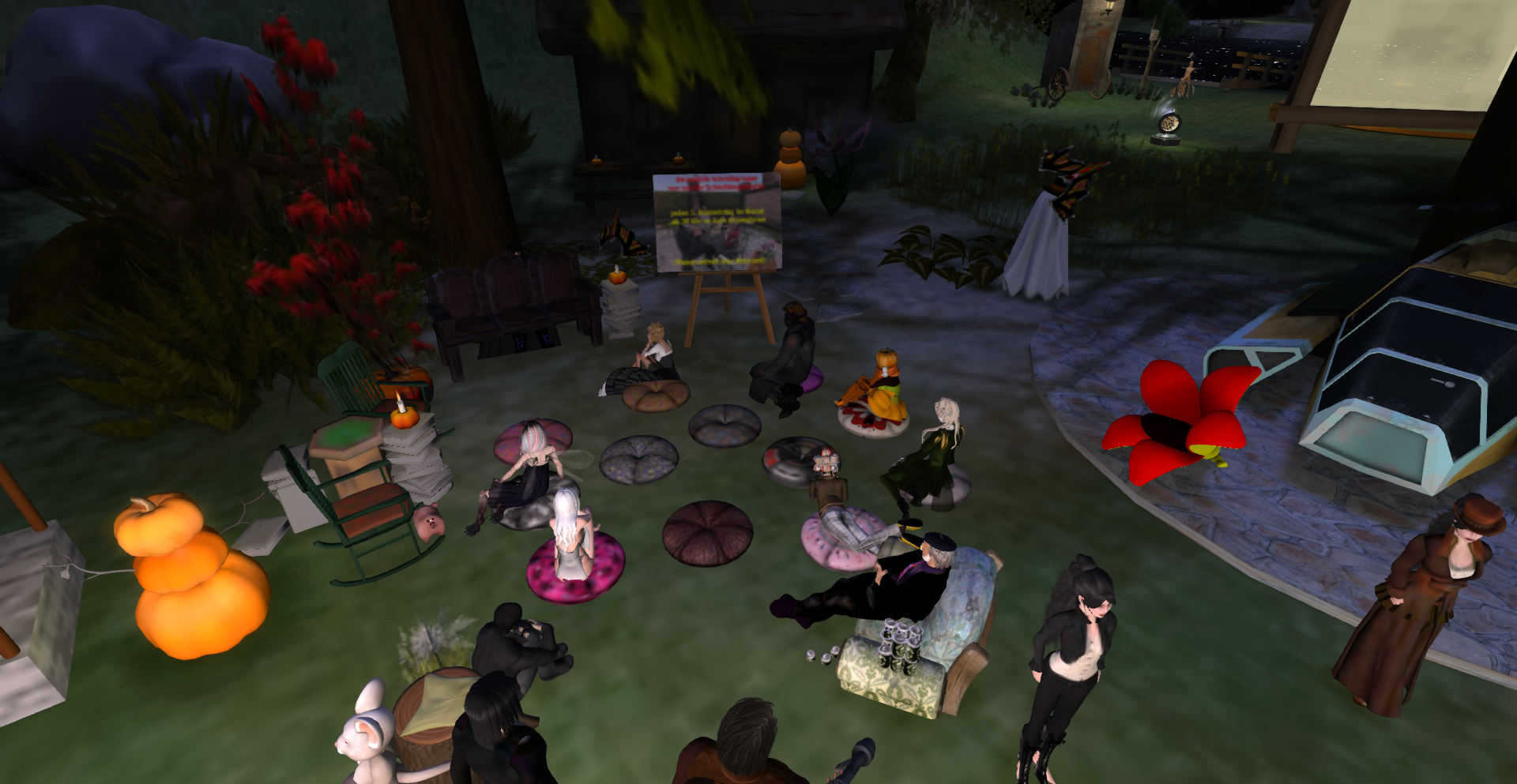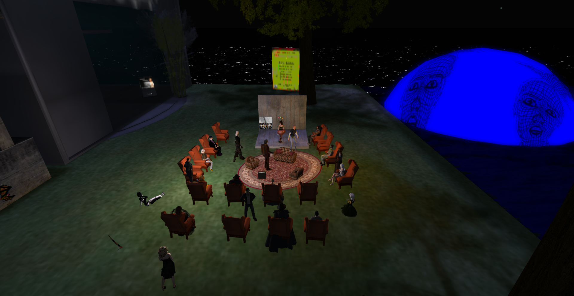 PS: und noch eine Premiere. Wer sich über den neuen Besucher „KoenigFeuerohr“ gewundert hatte. Es war kein normaler Besucher sondern ein RL-Publikum, das auf dem Sofa und Stühlen gebannt den Lesungen lauschte.