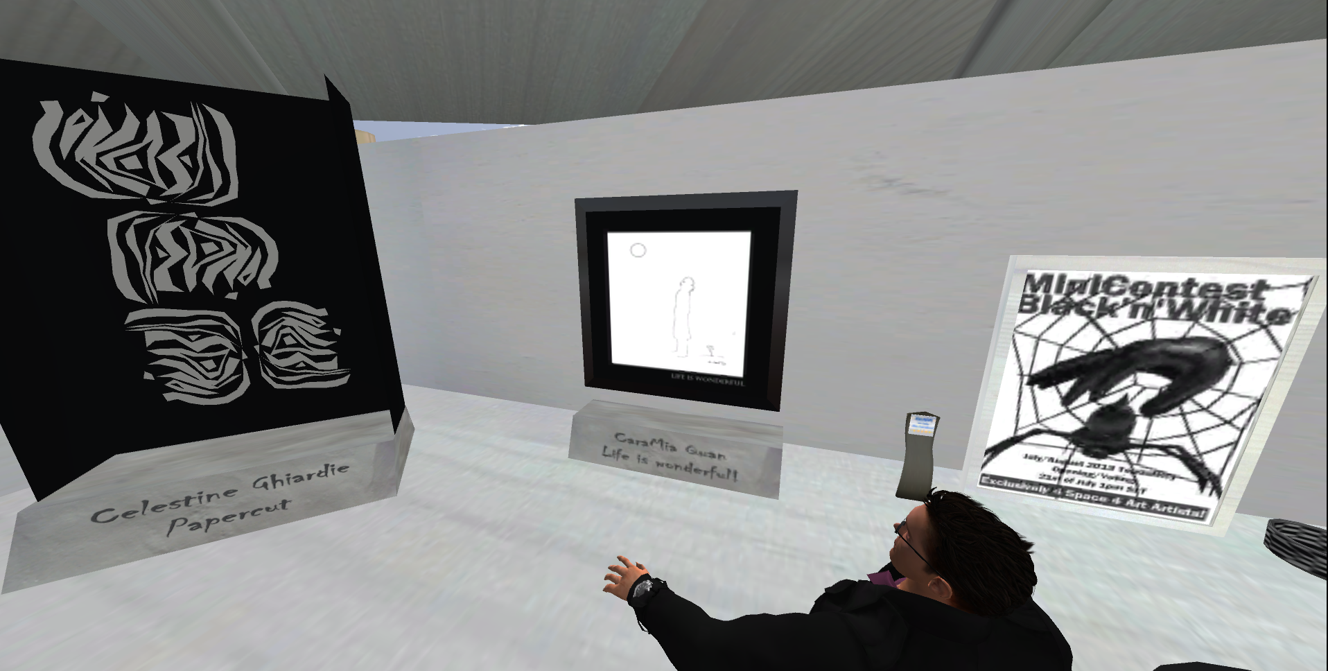 Und ich muss sagen, die Sim ist in ihrer Gesamtheit einen langen Blick wert. Man kann sich dort stundenlang aufhalten und wird immer noch irgend etwas Neues und Interessantes entdecken können. Wie zum Beispiel den MiniContest „Black’n’White“ mit der Gewinnerin des Contests Möwe Winkler. Das Objekt ist nur auf den ersten Blick schlicht, schauen Sie es sich eine Weile an …