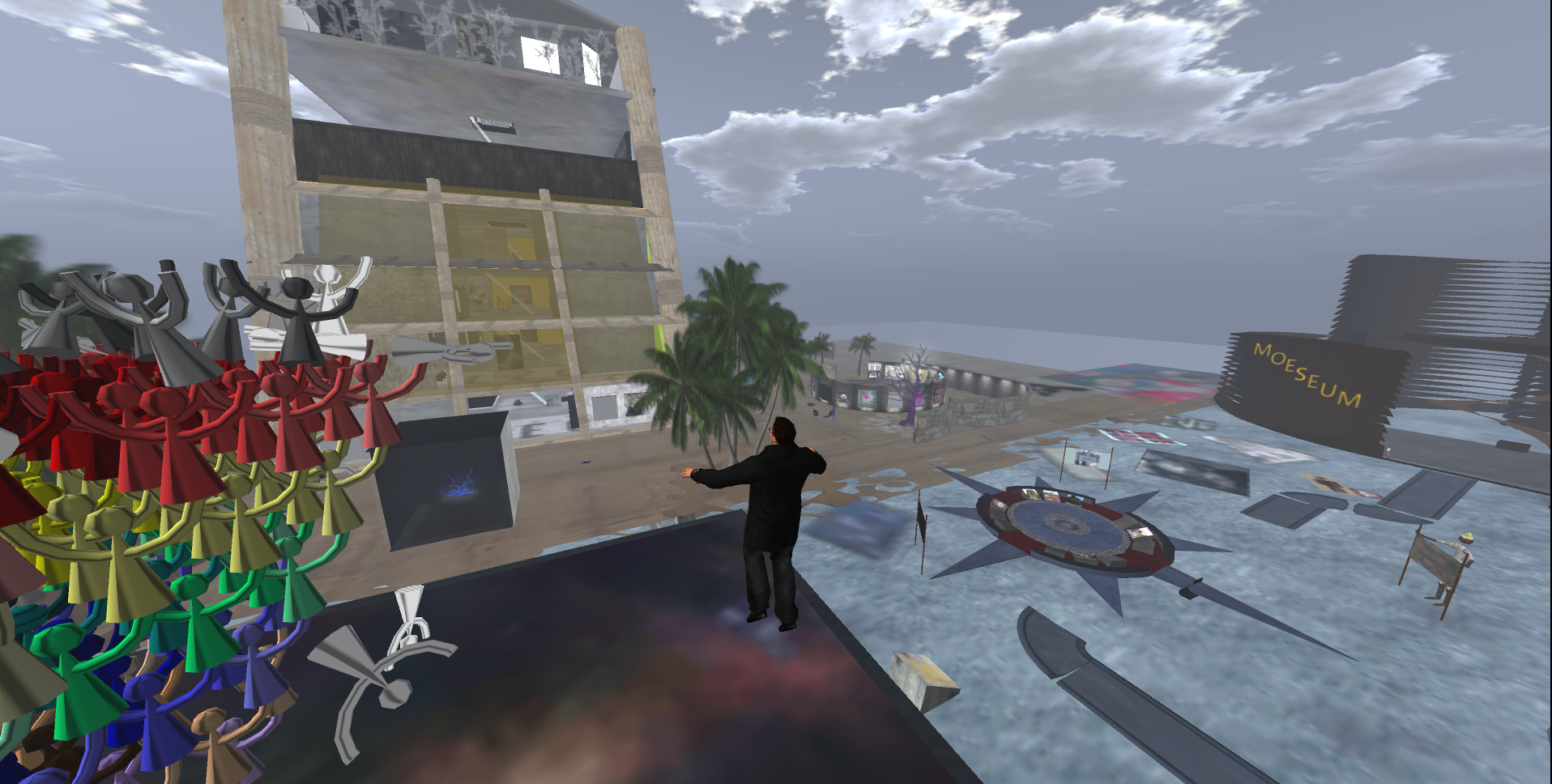 Das übliche -Pling- kündigte den Erhalt einer neuen Nachricht aus dem Netz an: „Jemand hat einen Preis für seine Arbeit gewonnen“. Ok. Die Fotos und das Video ließen jetzt auf ein schlichtes, sich bewegendes Objekt im virtuellen Raum schließen. Nun von der Insel „Space 4 Art“ hatte ich schon mal im Zusammenhang mit dem kommenden Event „hörbare und nicht hörbare Musik“ im SL-Planetarium gehört. Also die Gelegenheit mal einen Blick auf die Künstler zu werfen.