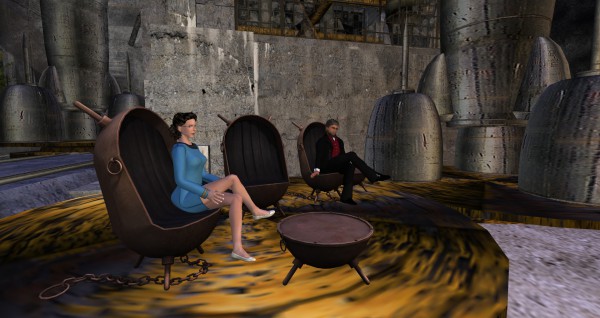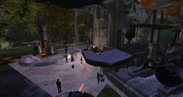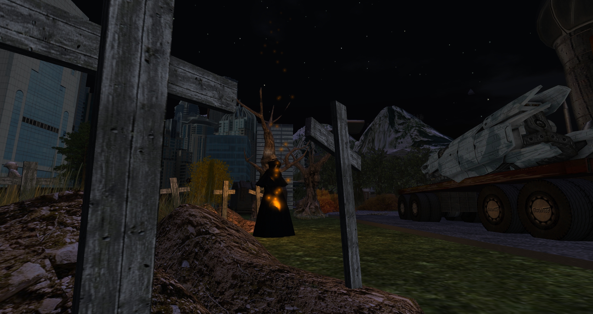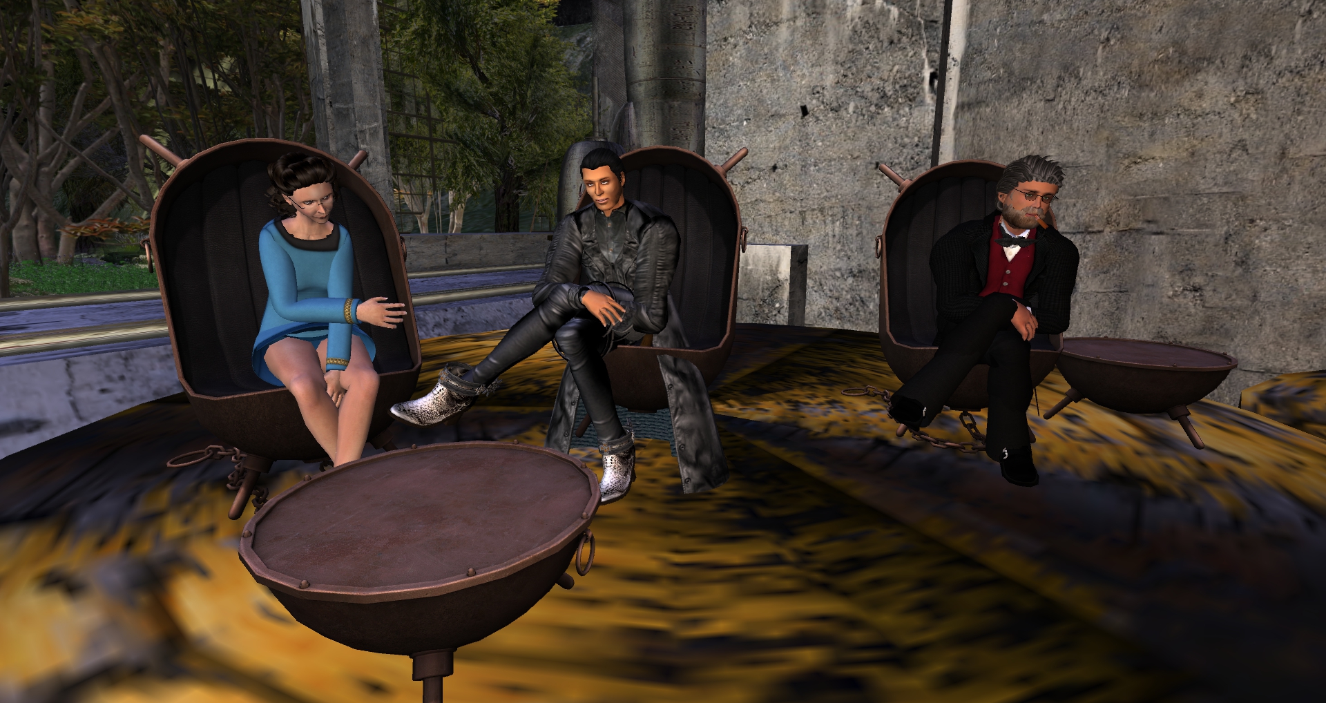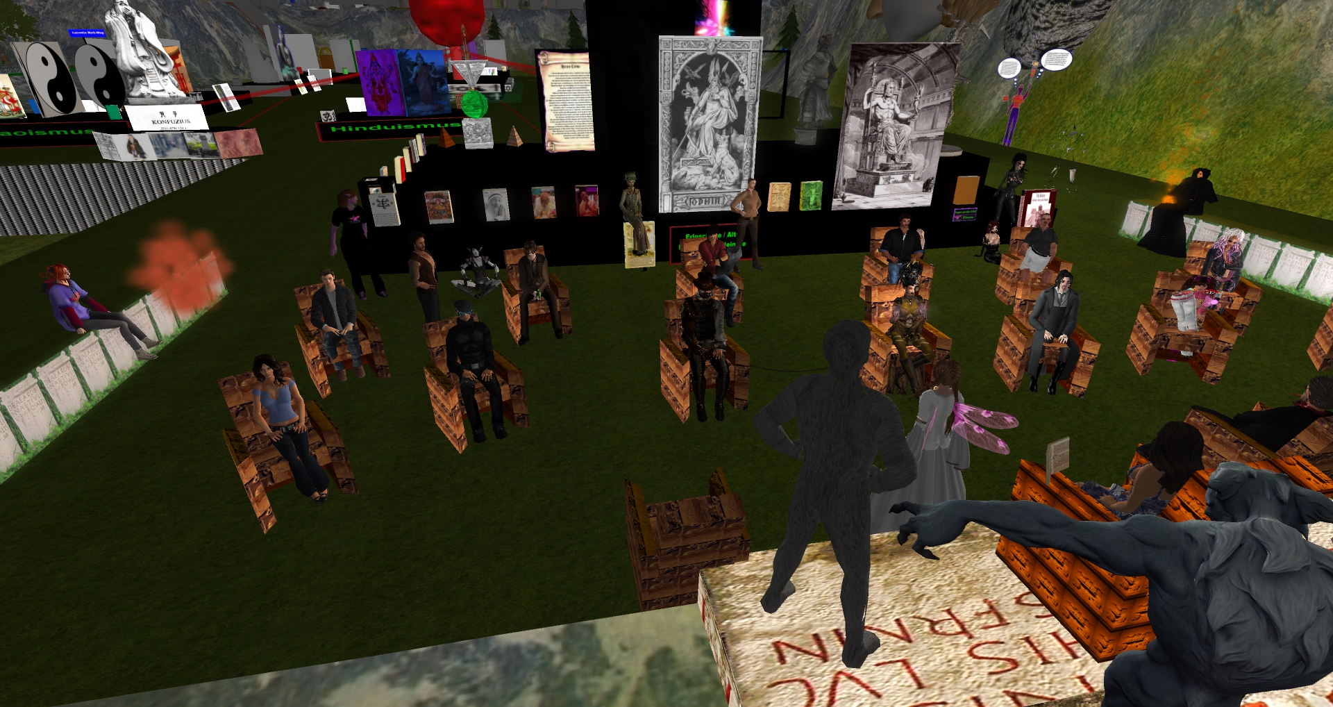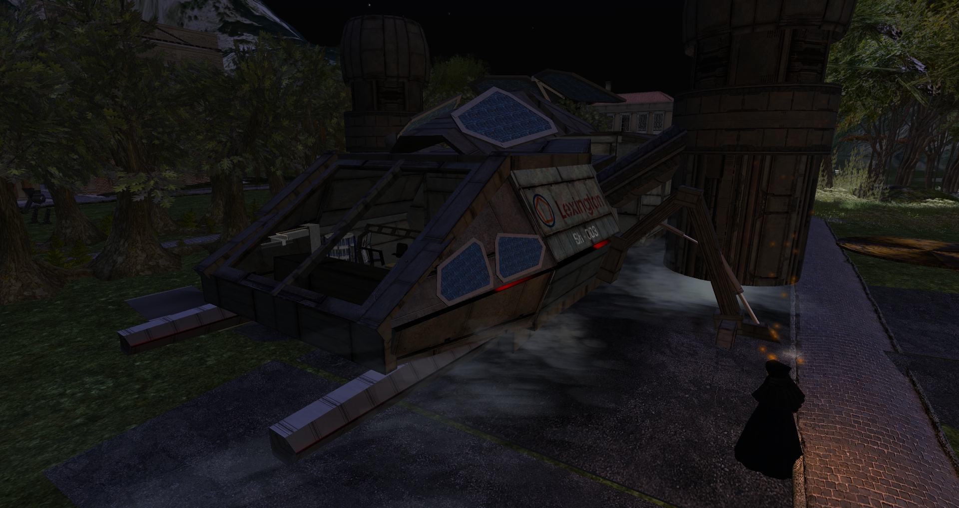 Nach leichten Anlaufschwierigkeiten war dann schnell klar: Das Warten hat sich gelohnt! Eine unglaubliche Bühnenpräsenz, die noch von einen Soundtrackt unterstützt wurde. Tom Daut las in einer Kulisse, die fast eine gesamte SIM umfasste und von Barlok Barbosa und ClaireDiLuna Chevalier gemeinsam gestaltet wurde. Der gelesene Teil aus „Die Sinistra“ war eher Richtung harter Military SF, aber der Roman geht, nach dem Autor, dann mehr in Richtung einer Mischung aus Dark Fantasy und Military SF.