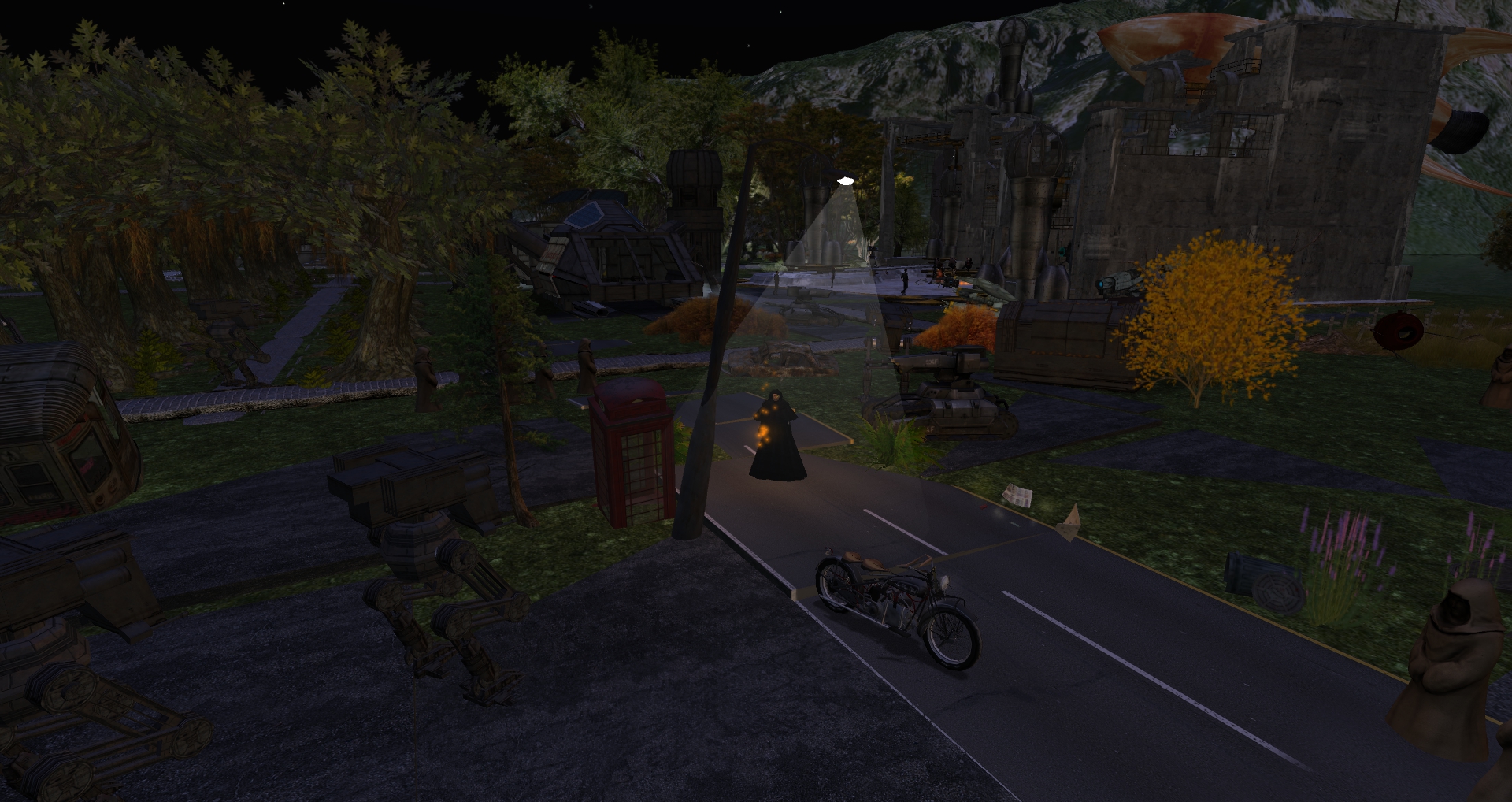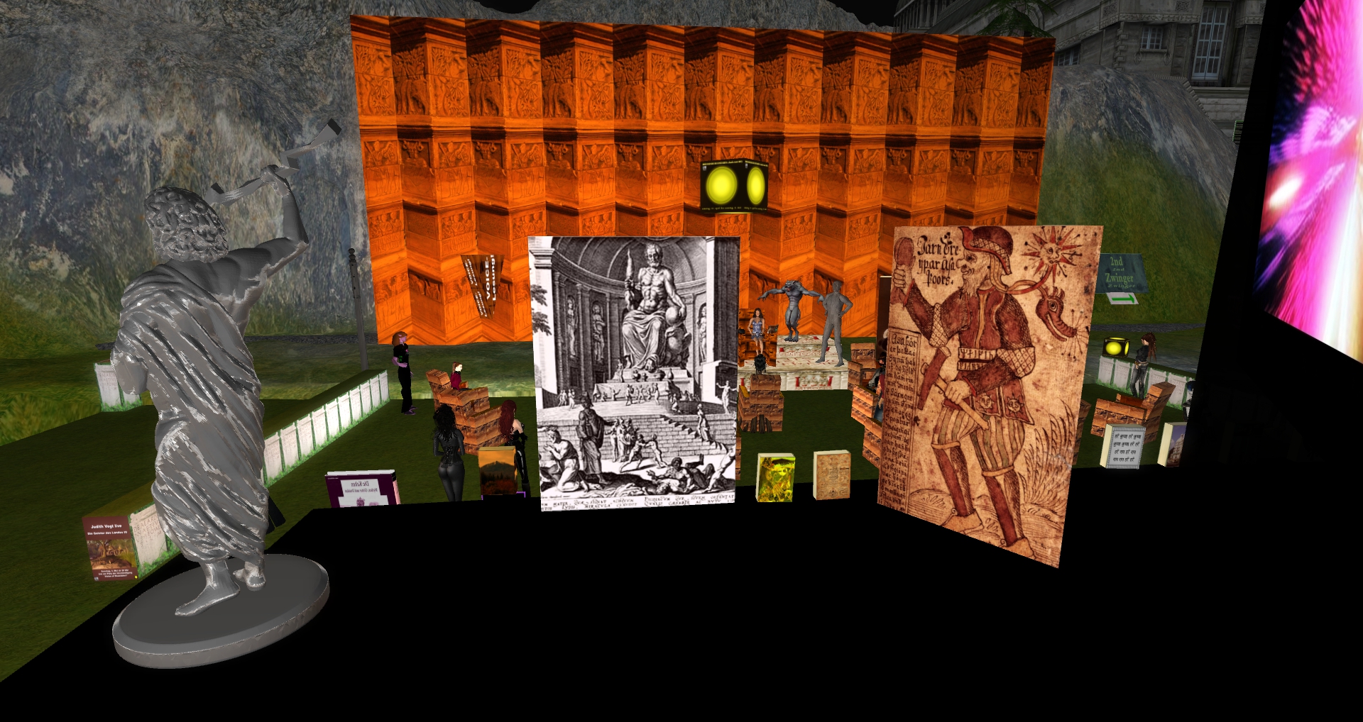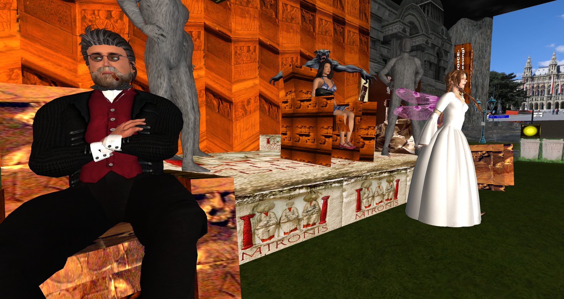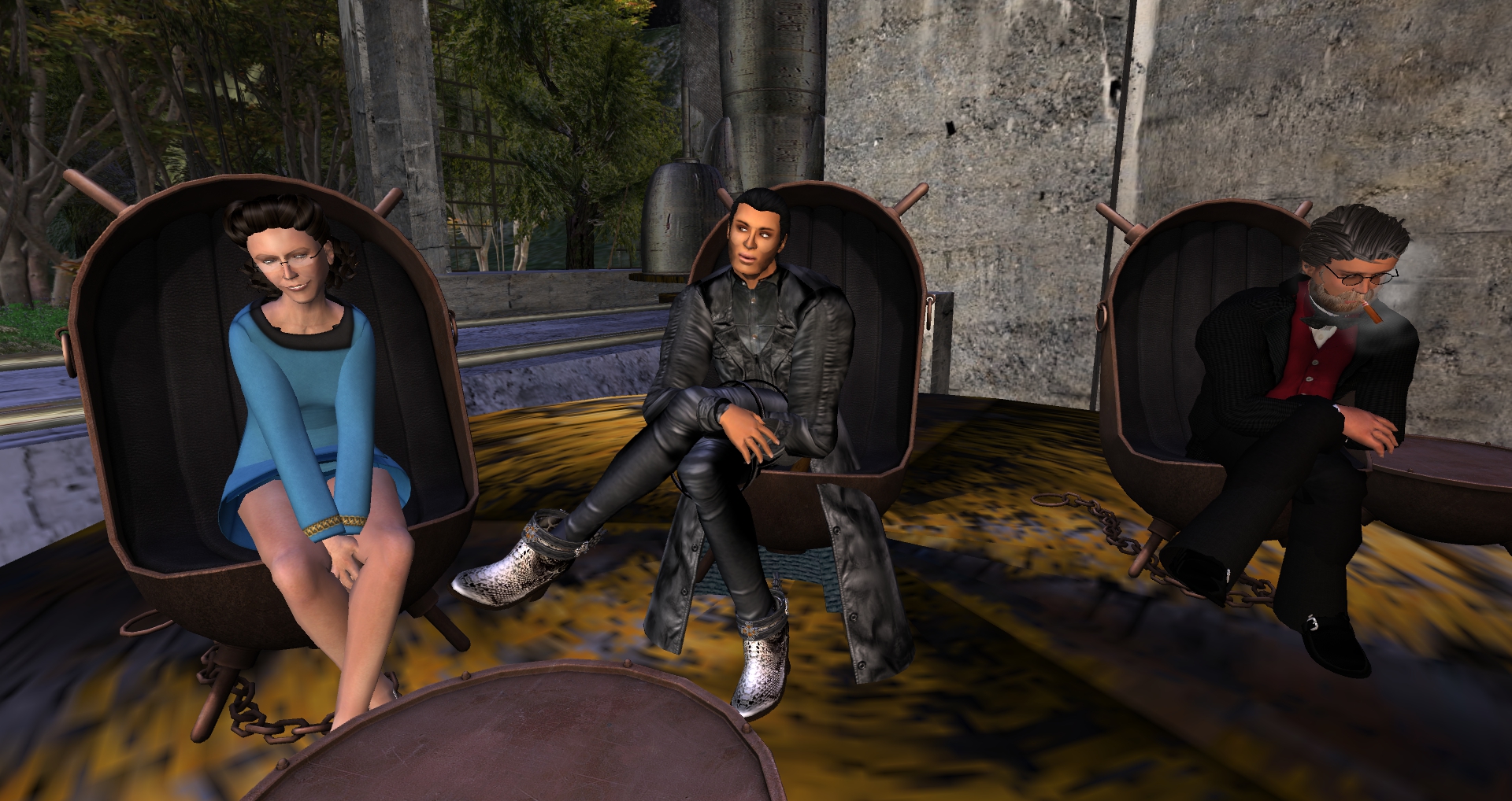 Nach leichten Anlaufschwierigkeiten war dann schnell klar: Das Warten hat sich gelohnt! Eine unglaubliche Bühnenpräsenz, die noch von einen Soundtrackt unterstützt wurde. Tom Daut las in einer Kulisse, die fast eine gesamte SIM umfasste und von Barlok Barbosa und ClaireDiLuna Chevalier gemeinsam gestaltet wurde. Der gelesene Teil aus „Die Sinistra“ war eher Richtung harter Military SF, aber der Roman geht, nach dem Autor, dann mehr in Richtung einer Mischung aus Dark Fantasy und Military SF.