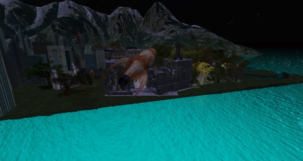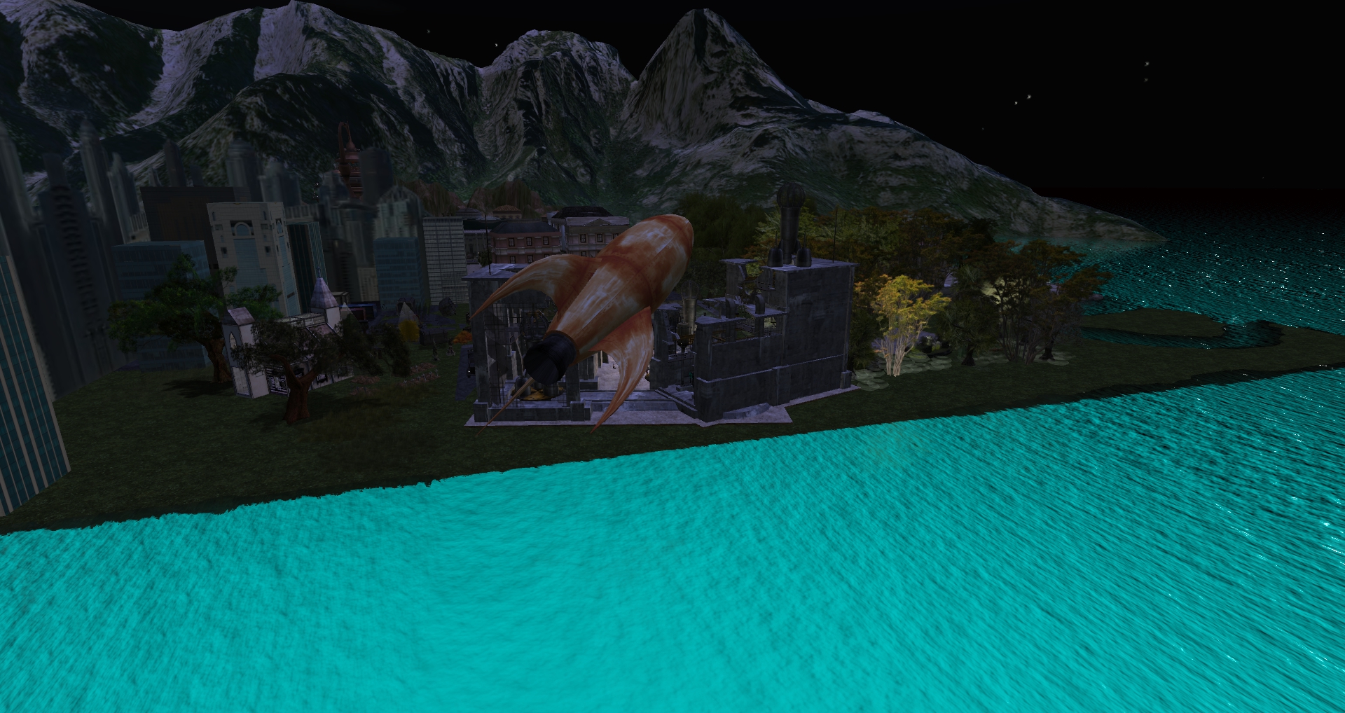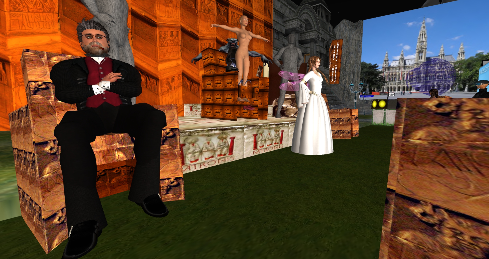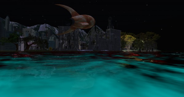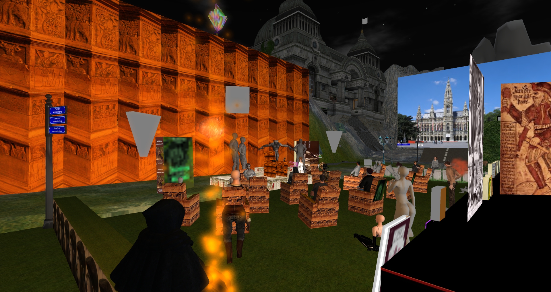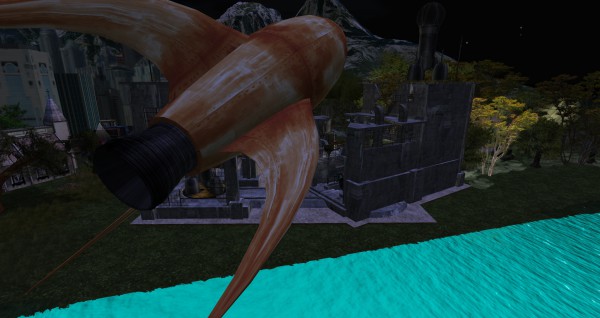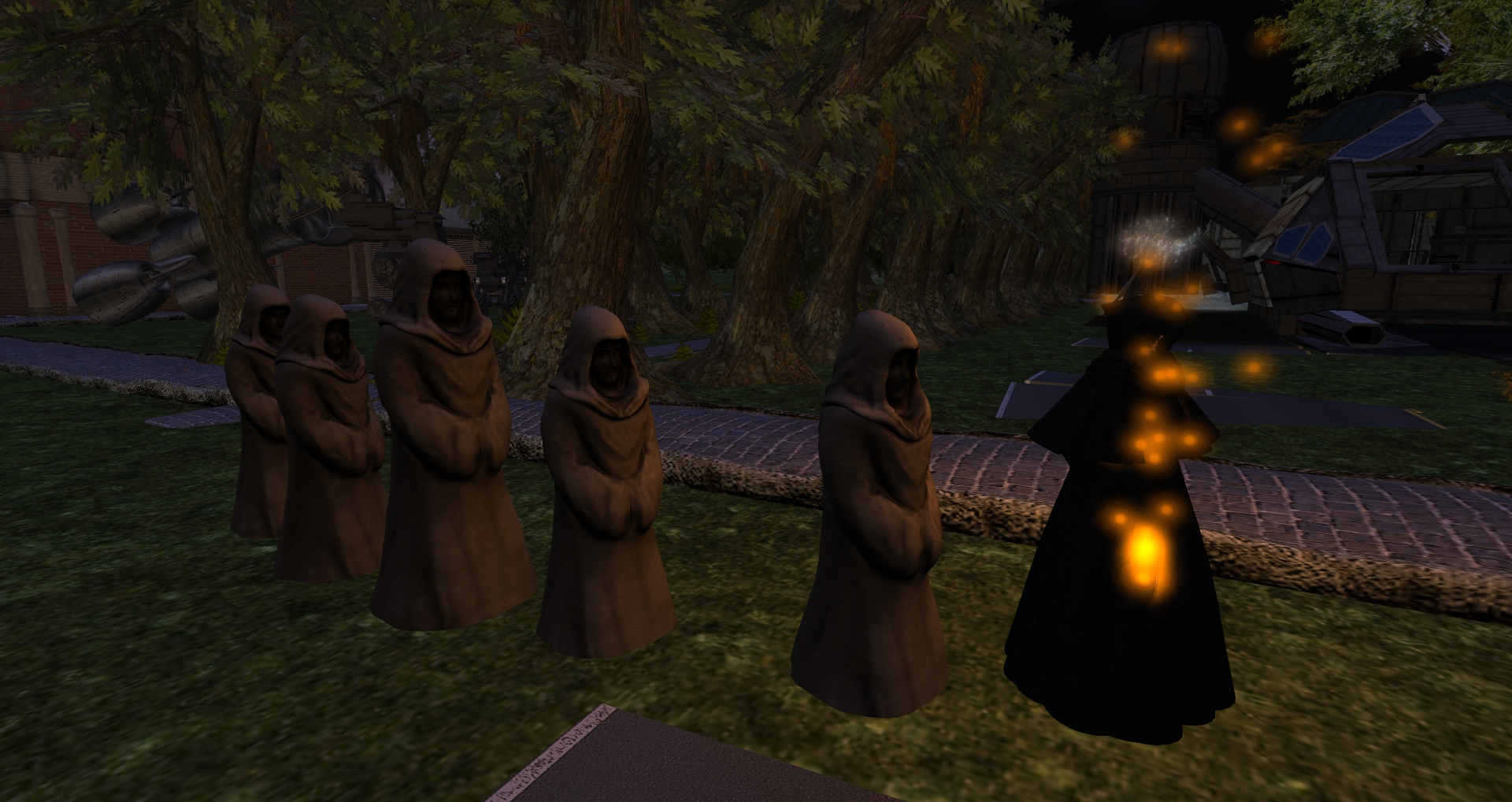 Nach leichten Anlaufschwierigkeiten war dann schnell klar: Das Warten hat sich gelohnt! Eine unglaubliche Bühnenpräsenz, die noch von einen Soundtrackt unterstützt wurde. Tom Daut las in einer Kulisse, die fast eine gesamte SIM umfasste und von Barlok Barbosa und ClaireDiLuna Chevalier gemeinsam gestaltet wurde. Der gelesene Teil aus „Die Sinistra“ war eher Richtung harter Military SF, aber der Roman geht, nach dem Autor, dann mehr in Richtung einer Mischung aus Dark Fantasy und Military SF.