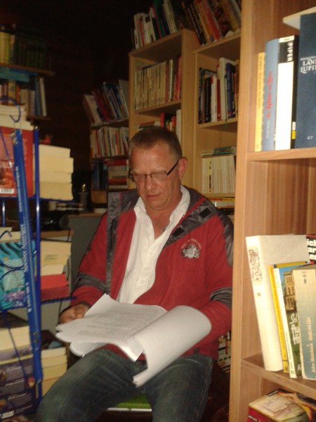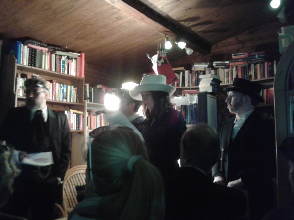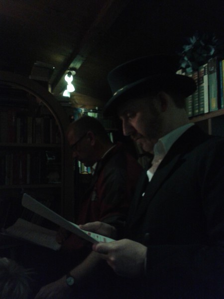 Dort gaben sich heute so bekannte Schriftsteller wie Anja Bagus, Bernar LeSton und Thorsten Küper die Klinke in die Hand, bzw. sie lasen gleich alle gemeinsam die einzelnen Stücke szenisch. Unterstützt wurden sie dabei noch von der Gründerin der brennenden Buchstaben Kirsten Riehl und Bernhard Giersche.