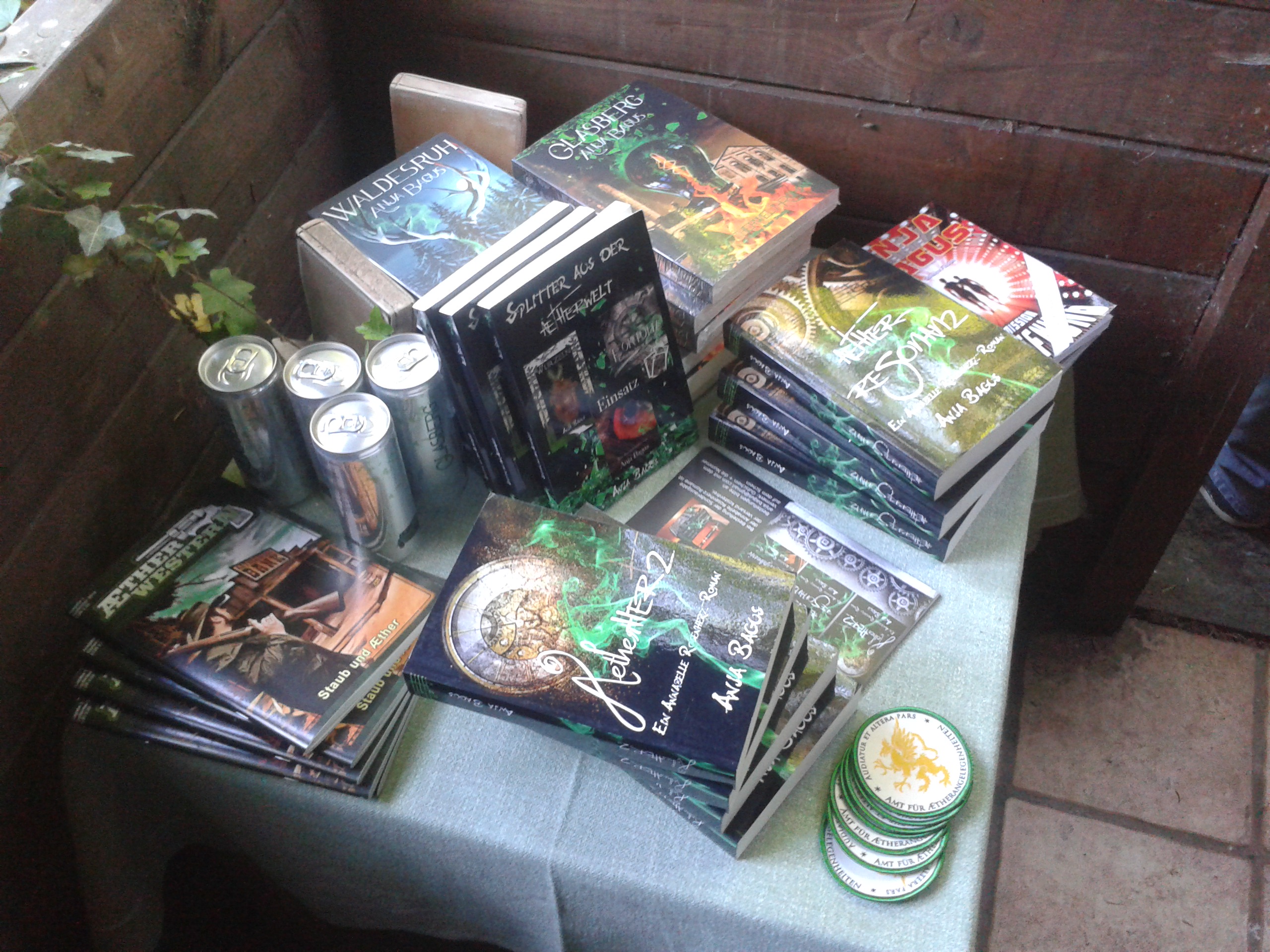Heute gab es außer dem dortigen Schützenfest noch einen Grund nach Soest zu fahren: Das Steampunk-Picknick in Markus Bücherkiste. Wetterbedingt fand es dann doch drinnen im Trockenen statt. Gut versorgt mit dem persönlichen Picknick-Pack stand den Lesungen dann nichts mehr im Weg.