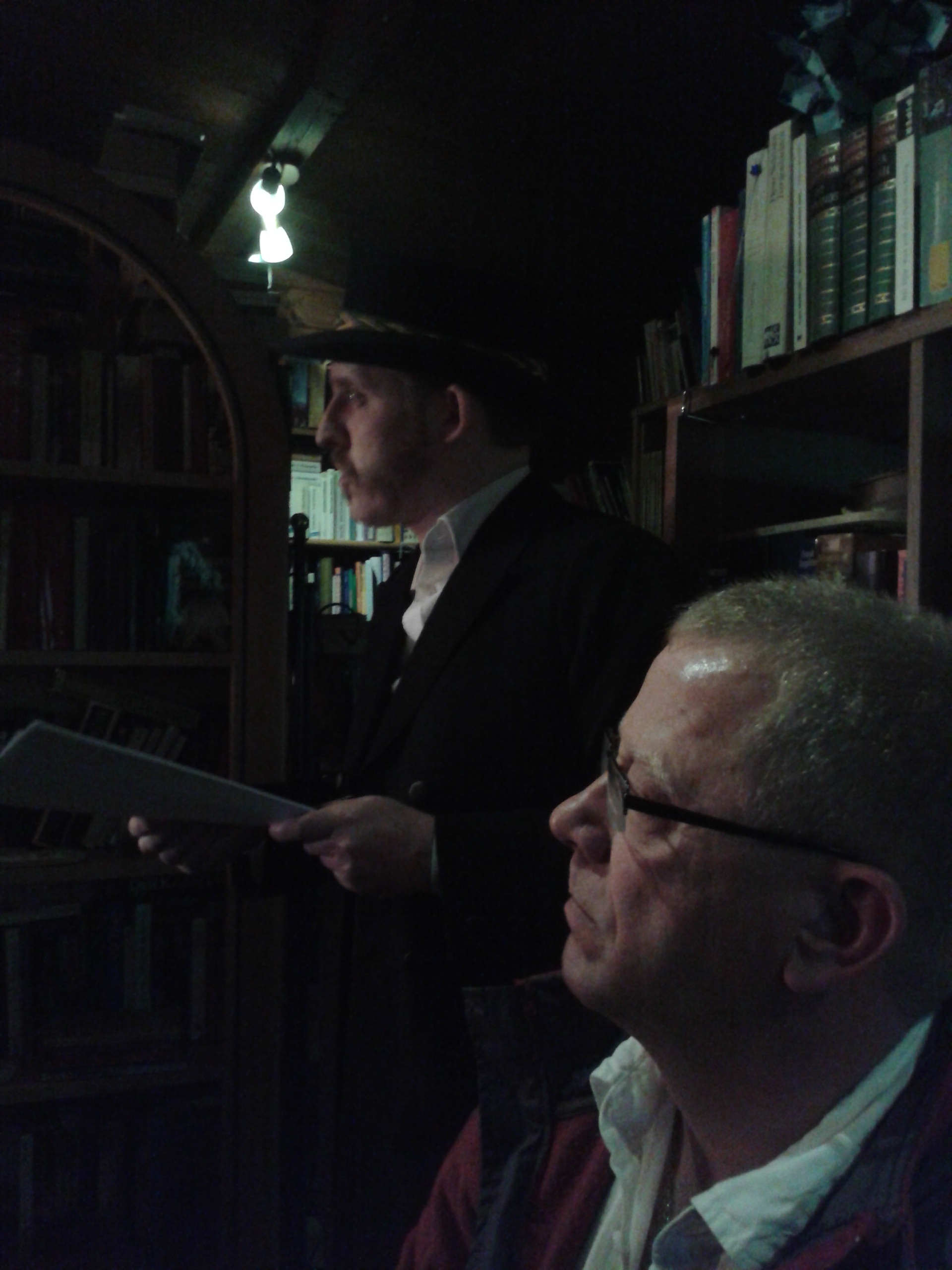 Den Lesungsabend eröffnete ein Auszug aus Bernar LeStons bisher noch unveröffentlichem Roman. Ins New York zur Zeit von Thomas Alva Edison und Nikola Tesla entführt, durfte dann natürlich auch ein Bezug zum Gleichstrom/Wechselstrom Streit der beiden Erfindergrößen nicht fehlen, aber auch die eigentliche Geschichte um den Detektiv, der allerlei merkwürdige Fledermaus-Männer zu jagen hat, kam natürlich auch nicht zu kurz.