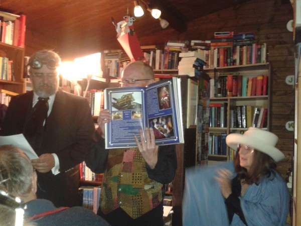 Als zweiten literarischen Gang des Abends wurde dem begeisterten Publikum Thorsten Küpers Kurzgeschichte »Prudences Regiment« aus dem vom Alex Jahnkes und Clara Lina Wirzs herausgegebenem »Das große Steam Panoptikum«. Wieder hervorragend szenisch gelesen und eine gewohnt küperneske Geschichte mit einem sehr netten Ende. Die Herausgeberin des Steam Panoptikums, Clara Lina Wirz, war ebenfalls anwesend und konnte bei der Gelegenheit einige Fragen des Publikums zu dem sehr gelungenem Buch beantworten. Das Buch konnte gleich dort bewundert werden und es lohnt definitiv einen intensiveren Blick, einerseits natürlich wegen Thorsten Küpers hervorragender Kurzgeschichte, aber auch wegen der vielen gelungenen Eindrücke zum Thema Steampunk.