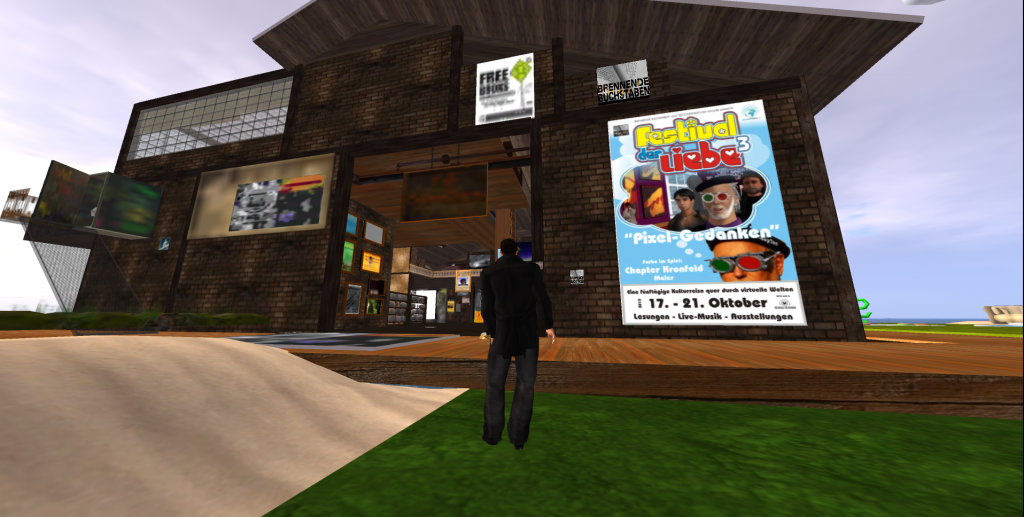 Dann gab es noch jede Menge tooler Locations, passend für Lesungen und andere Events hergerichtet. Luftschiffe, Raumstationen und vieles andere mehr, der Fantasie waren und sind da keine, oder kaum Grenzen gesetzt. Und das nicht nur in SL, sondern auch auf den freien Grids. An den Brennenden Buchstaben und am Namen Thorsten Küper kommt man in dem Zusammenhang einfach nicht vorbei (Und will es natürlich auch nicht).