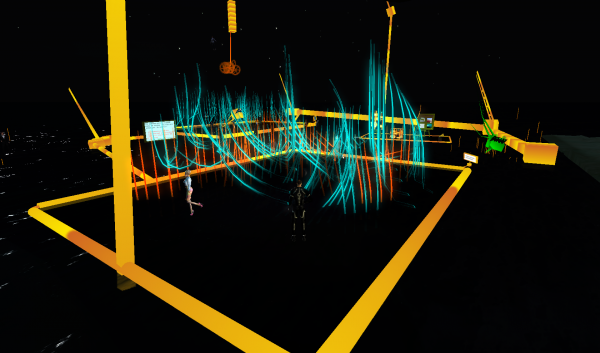 Wie immer ist es ein besonderes Erlebnis eine von Moewes begehbare und interaktive Installation zu erleben. Das audiovisuelle Erlebnis entsteht beim Durchlaufen des „Schilfs“. Man könnte es beschreiben, aber besser ist es das selbst zu erleben.
