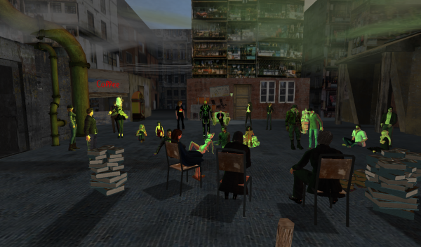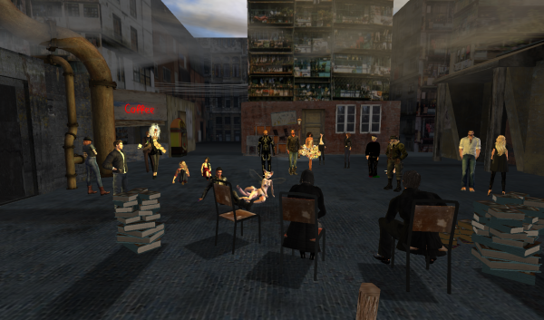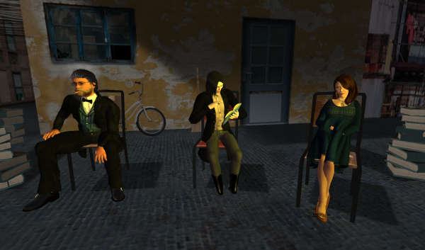 Weiter ging es dann mit Sabine „Joey“ Schäfers Lesung aus Schläferkind. Das erste Kapitel der Lesung klappte reibungslos und dann machte es das SL Voice System spannend. Mal wieder, keine Ahnung ob Linden-Labs das noch mal in den Griff bekommt. Nach ein paar Minuten Hoffen und Bangen konnten wir dann aber in die nächsten Kapitel starten. Ich durfte bei ein paar Stellen meine Stimme beisteuern und mir hat es eine meine Spaß gemacht mit Joey, Thorsten und Kirsten zu lesen. Aber auch dem Publikum schien es gefallen zu haben.
