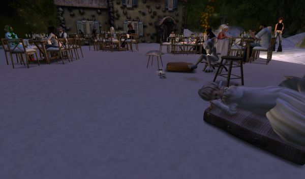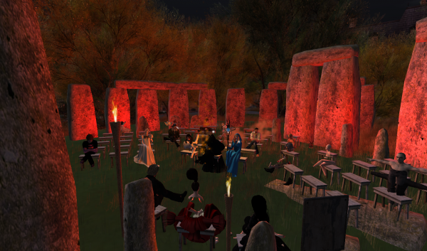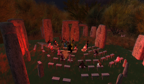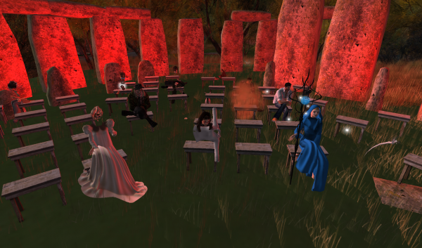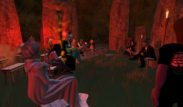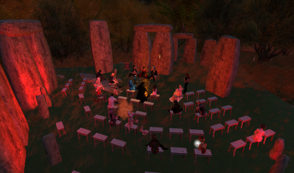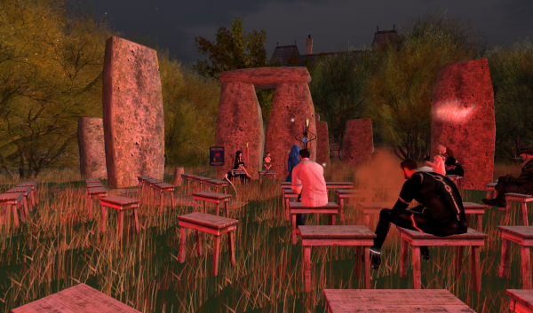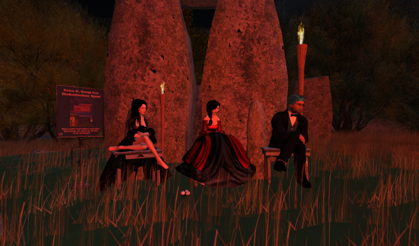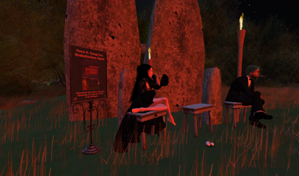 Den Auftakt machte Petra K. Gungl in SL Stuttgart mit ihrer Lesung aus „Diabolisches Spiel“. Leider gab es ein paar Probleme mit Petra K. Gungls Internetleitung, aber Jennifer B. Wind und Thorsten Küper konnten den Text dann doch noch fast wie geplant an den Zuhörer bringen. Besonders Klasse fand ich dieses Mal den Steinkreis mitten im SL Stuttgart, der hatte was.