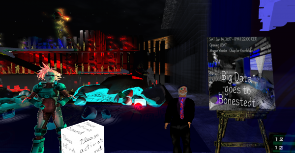 Die lange Überschrift deutet es schon an, gestern gab es gleich zwei Events, die mich in die virtuelle Welt von Second Life gezogen haben. Erstens die erste Lesung der brennenden Buchstaben im neuen Jahr und dann noch eine Kunstausstellung von Moewe Winkler und ChapTer Kronfeld.