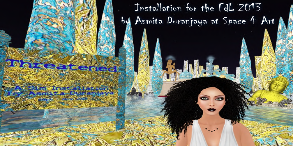 Antwort A. D.: Wie viele Deutschsprachige habe ich im Herbst 2007 in SL angefangen und wollte die virtuelle Welt als Werbestrategie für unsere in RL produzierten Bücher nutzen. Deshalb begann mein zweites Leben in einem Buchshop auf Book Island. Schnell weitete sich jedoch mein Horizont in Richtung künstlerische Betätigung aus und ich lernte immer mehr internationale Künstler in Second Life kennen, an denen ich mich orientierte und die mir die Motivation gaben, mich in viele der virtuellen Techniken einzuarbeiten. Es begann dann eine ungemein spannende und hochkonzentrierte Entwicklung, die mich zu vielen Ausstellungen, Wettbewerben, Auszeichnungen und Aktivitäten führte. Eine ausführliche Liste ist auf Space 4 Art zu erhalten. 2010 war ich es leid, ständig auf kleinen Landparzellen operieren zu müssen und zum gleichen Zeitpunkt suchte ChapTer Kronfeld nach neuem Land, so dass schließlich die Idee entstand, eine ganze Sim zu mieten. Unsere dritte Partnerin war Migina Miklos, die eher negative Erfahrungen mit einer Homestead-Sim gemacht hatte. Space 4 Art war geboren und ich organisierte die Sim und das Künstlerprogramm, denn von Anfang an war es mir wichtig, nicht nur selbst als Künstlerin wahrgenommen zu werden, sondern auch für andere Möglichkeiten zu schaffen, sich darzustellen. Ich organisiere gerne, auch in RL, und so bot Space 4 Art von Anfang an das geeignete Umfeld. Als Migina dann ausschied, übernahmen Moe Sandalwood und Lilia Artis ihren Landanteil und nun wird im November 2013 nach FdL ein dritter Wechsel stattfinden, da die beiden sich mehr auf RL konzentrieren müssen. ChapTer Kronfeld und ich sind somit die tragende Basis von Space 4 Art, und wegen meiner Organisationsarbeit und der Betreuung von 16 weiteren Künstlern in einer sehenswerten Galerie identifiziere ich mich sehr damit und bin ChapTer dankbar, dass er die Grundidee mitträgt und mithilft, das Projekt am Laufen zu halten.